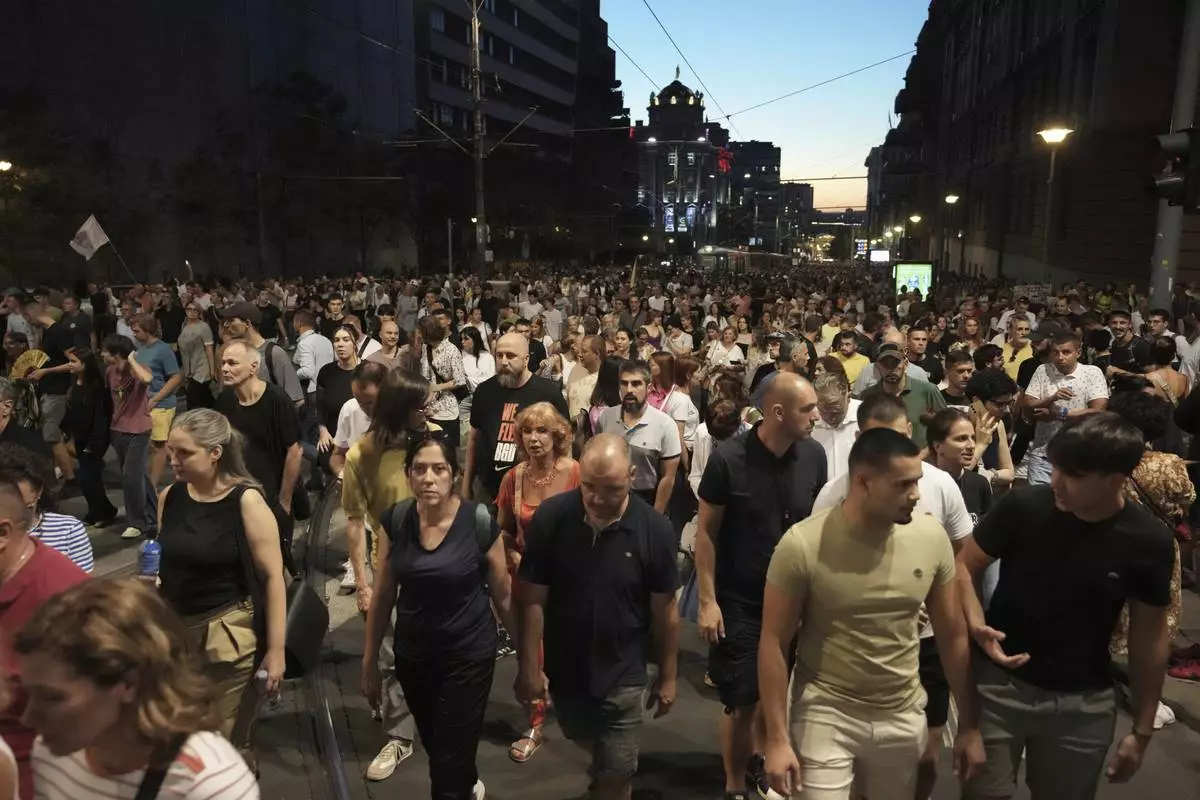 BELGRADE, Serbia (AP) — Tens of thousands of anti-government protesters marched again in Serbia on Monday with shielded riot police guarding the Belgrade headquarters of Serbia’s President Aleksandar Vucic, who has threatened a major crackdown against those protesting his populist rule.
