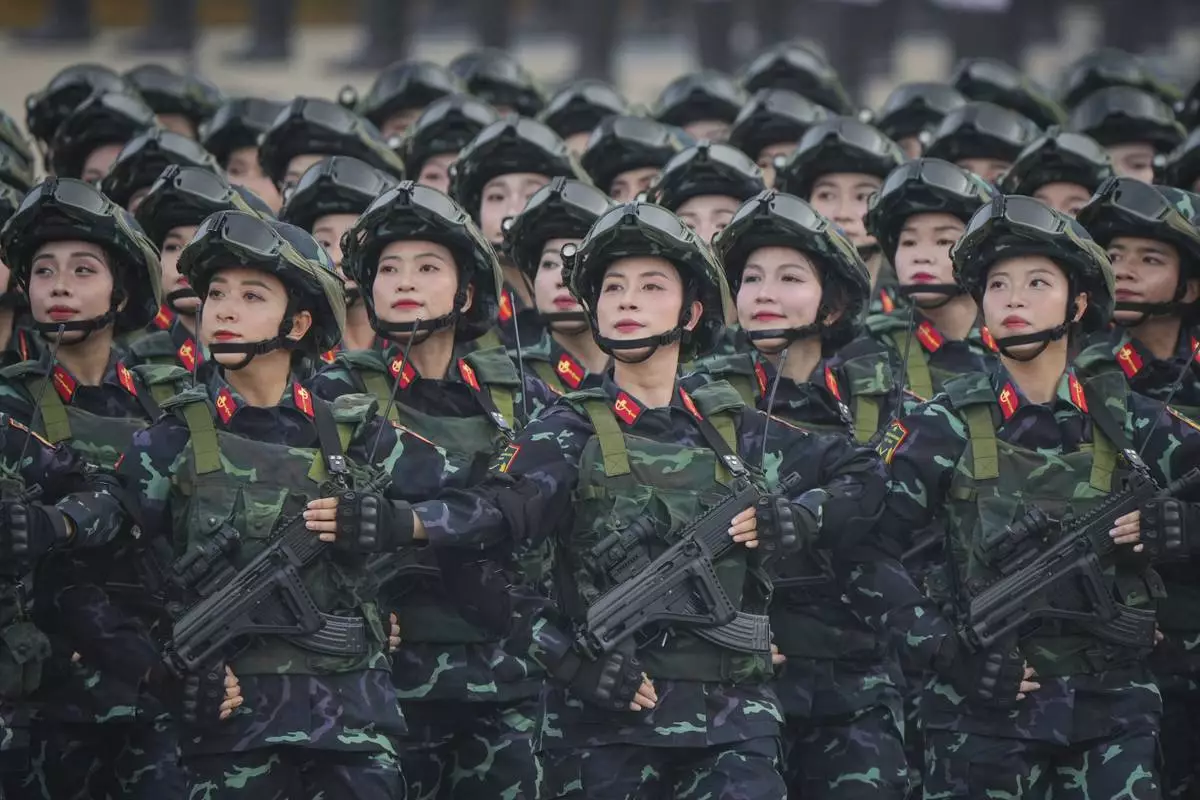 Vietnamese troops march during a parade celebrating the 80th anniversary of independence in Hanoi, Vietnam Tuesday, Sept. 2, 2025. (AP Photo/Vincent Thian, Pool)