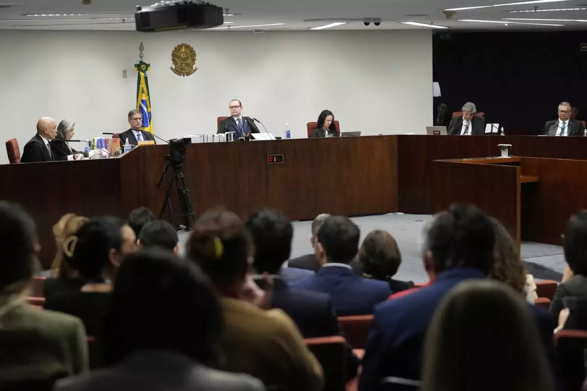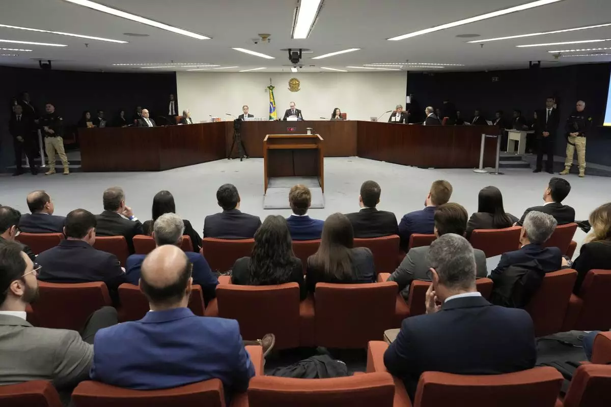 The Brazilian Supreme Court holds the verdict and sentencing phase of a trial for those charged in an alleged coup plot to keep Brazil's former President Jair Bolsonaro in office after his 2022 election defeat, in Brasilia, Brazil, Tuesday, Sept. 2, 2025. (AP Photo/Eraldo Peres)