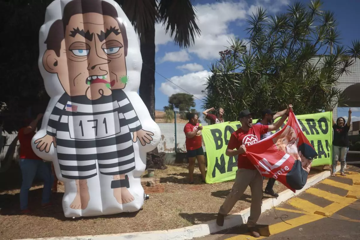 Outside the home, demonstrators against the ex-president blew up a huge balloon depicting Bolsonaro in prison clothes and got into shouting matches with Bolsonaro supporters. Police intervened and separated the two groups.