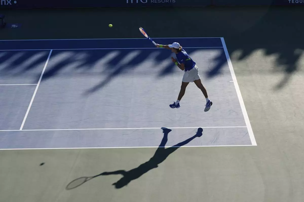 Alex de Minaur, of Australia, returns a shot against Daniel Altmaier, of Germany, during the third round of the U.S. Open tennis championships, Saturday, Aug. 30, 2025, in New York. (AP Photo/Pamela Smith)