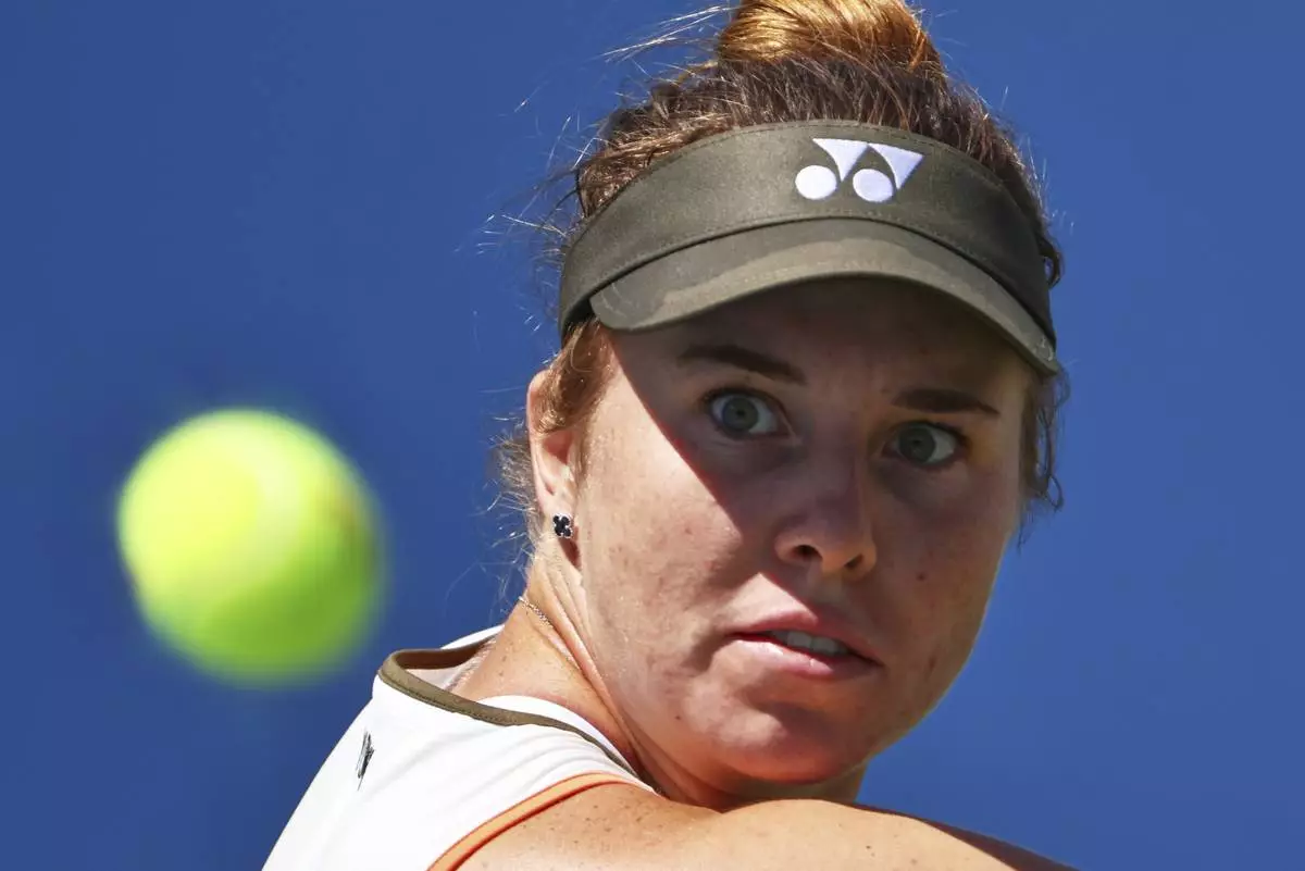 Ekaterina Alexandrova, of Russia, returns a shot against Laura Siegemund, of Germany, during the third round of the U.S. Open tennis championships, Saturday, Aug. 30, 2025, in New York. (AP Photo/Adam Hunger)