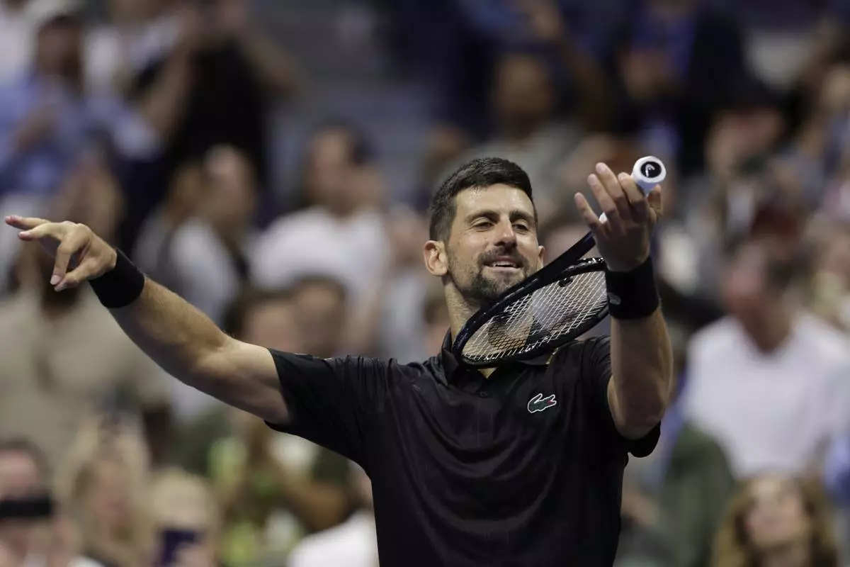 Novak Djokovic, of Serbia, reacts following a third round of the U.S . Open tennis championships, Friday, Aug. 29, 2025, in New York. (AP Photo/Adam Hunger)