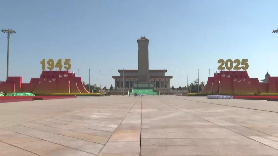 "Regarding the overall decoration layout of the square this time, we've placed the commemorative platforms with a year sign on both sides of the Monument to the People's Heroes, prominently displaying '1945-2025.' This arrangement beautifully illustrates the theme of unity for the commemorative event," said Tian Zhongli, director in charge of planning and design of the command center for service guarantee and square commemorative activities.