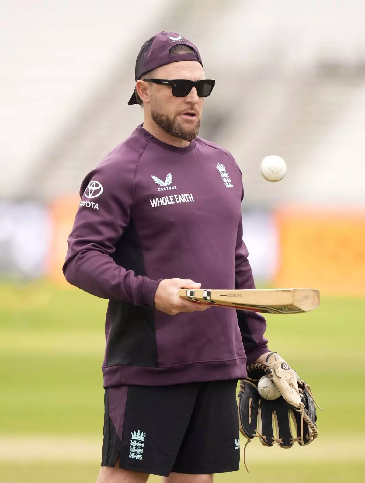 England head coach Brendon McCullum during a nets session at Headingley, Leeds, England, Monday Sept. 1, 2025. (Danny Lawson/PA via AP)