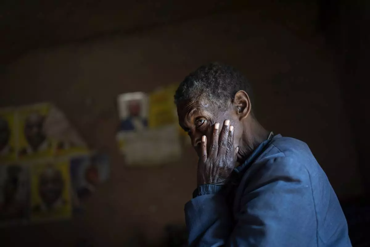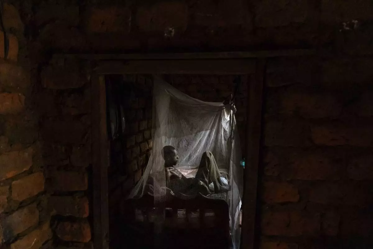 Joseph Malagho, who is about 70 and has survived living with HIV but now faces the complexities of old age, sits in his bed under a mosquito net at his home in Nkulagirire, Uganda, Friday, Nov. 15, 2024. (AP Photo/David Goldman)