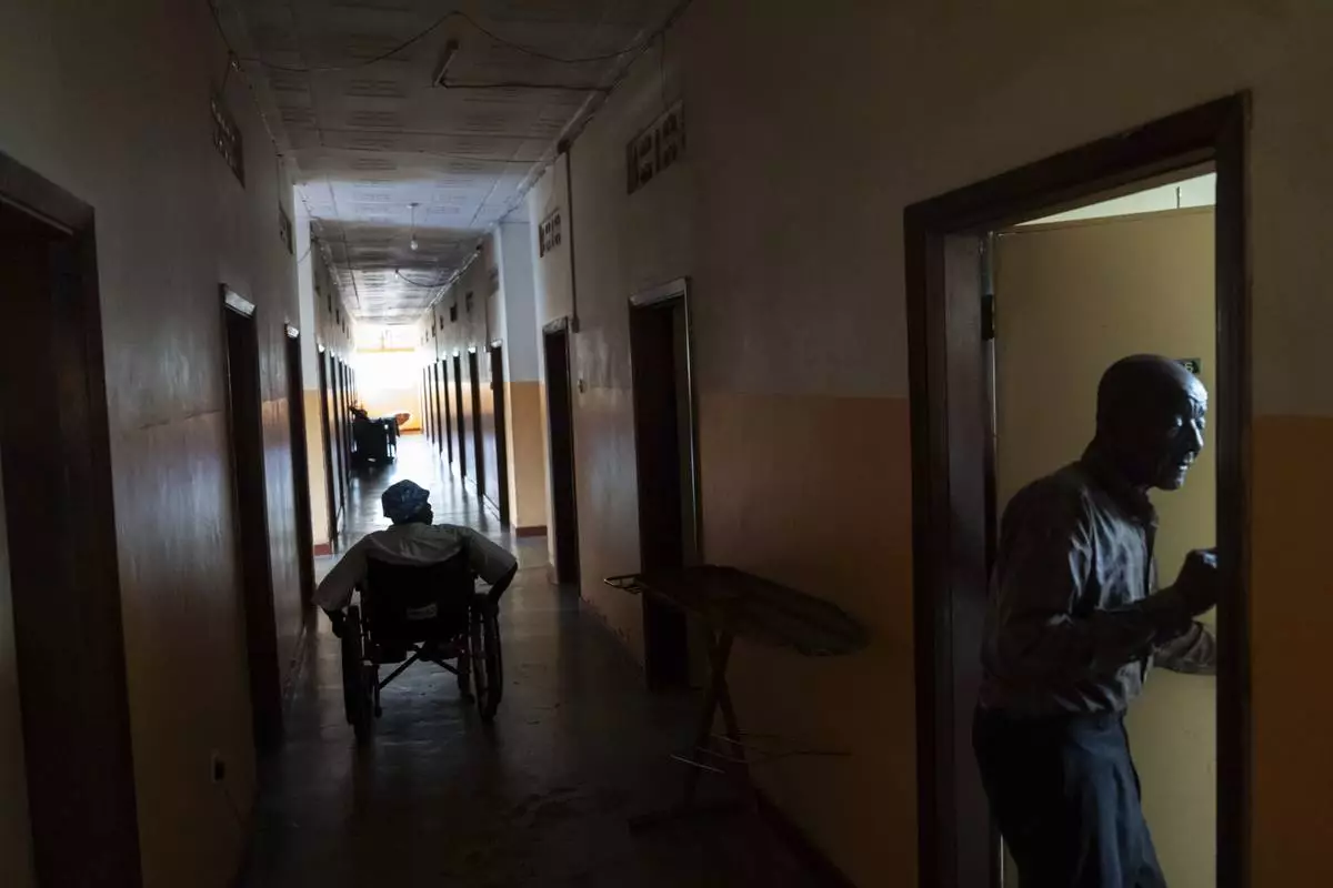 Residents return to their rooms at a home for seniors, disabled and abandoned people run by the Good Samaritan Sisters of Nalukolongo, one of the few care facilities for seniors in the country, in Kampala, Uganda, Saturday, Nov. 23, 2024. (AP Photo/David Goldman)