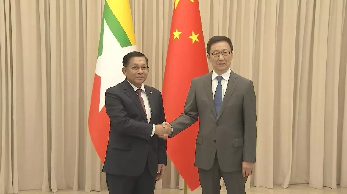 Chinese Vice President Han Zheng met with Min Aung Hlaing, acting president of Myanmar, in Beijing on Tuesday.