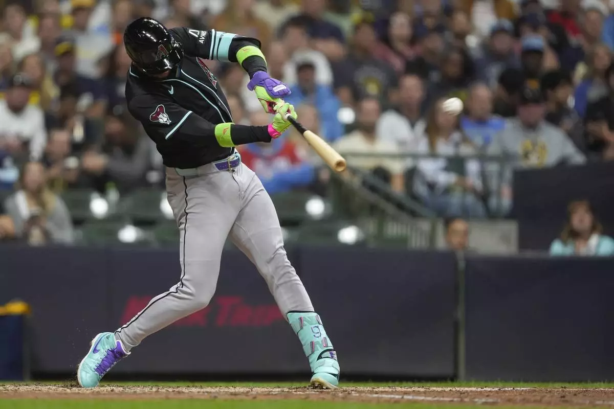 Arizona Diamondbacks' Lourdes Gurriel Jr. hits a three-run home run during the fifth inning of a baseball game against the Milwaukee Brewers, Monday, Aug. 25, 2025, in Milwaukee. (AP Photo/Aaron Gash)