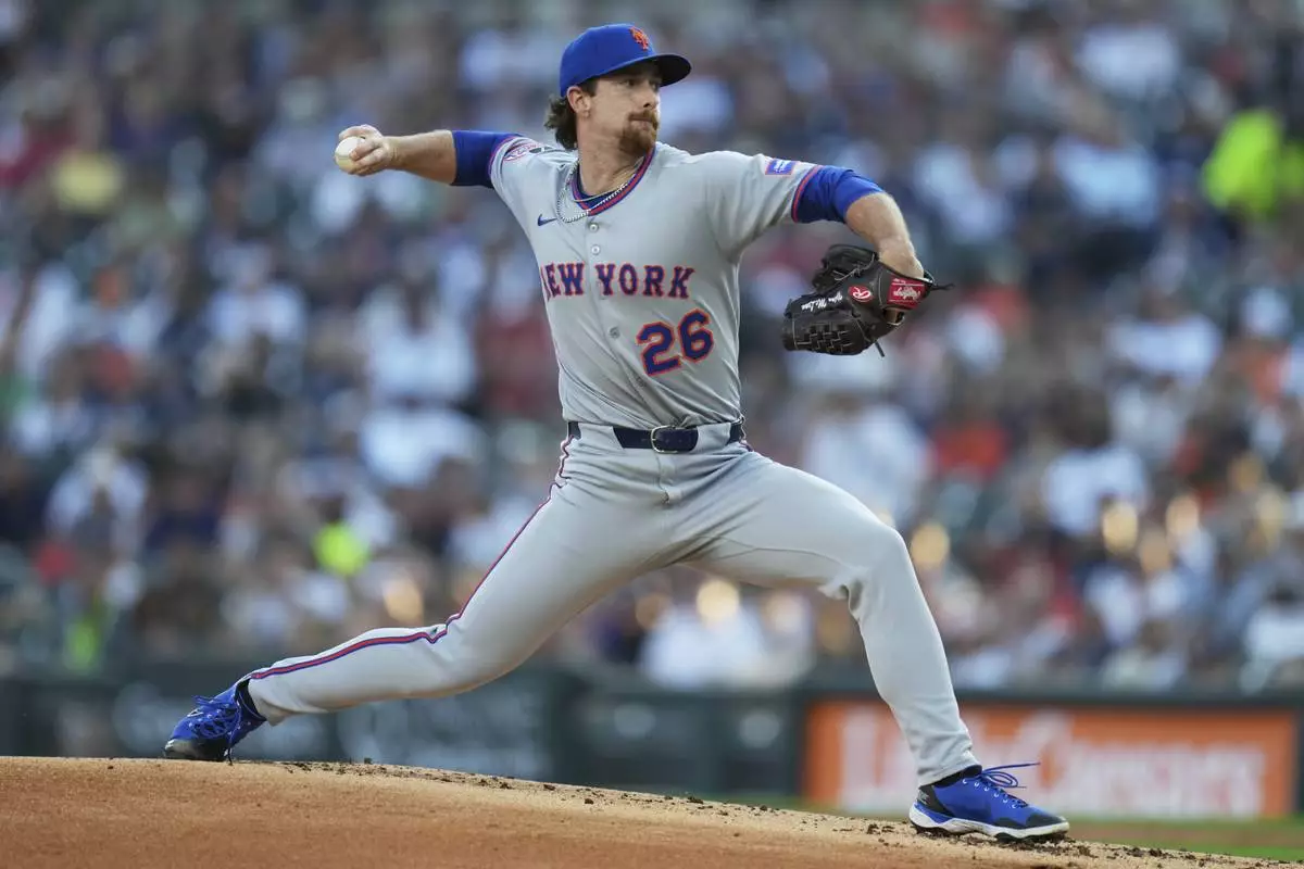 New York Mets starting pitcher Nolan McLean throws during the first inning of a baseball game against the Detroit Tigers, Tuesday, Sept. 2, 2025, in Detroit. (AP Photo/Ryan Sun)
