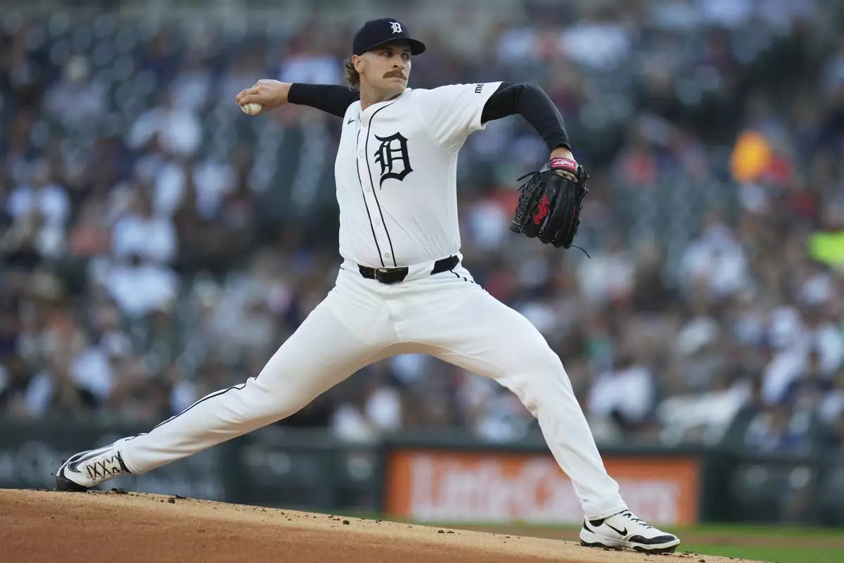 Detroit Tigers starting pitcher Sawyer Gipson-Long throws during the first inning of a baseball game against the New York Mets, Tuesday, Sept. 2, 2025, in Detroit. (AP Photo/Ryan Sun)