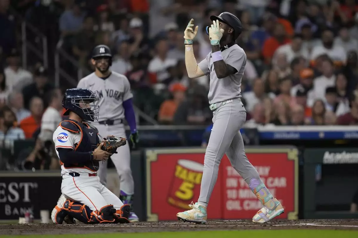 HOUSTON (AP) — Trent Grisham hit his second grand slam in five days and Jazz Chisholm Jr. homered twice to lead the New York Yankees to a 7-1 win over the Houston Astros on Tuesday night.
