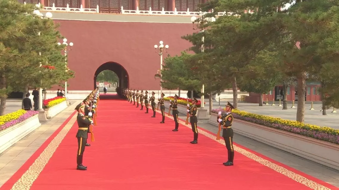 Later, President Xi, also general secretary of the Communist Party of China Central Committee and chairman of the Central Military Commission, will walk onto the Tian'anmen Rostrum together with the international guests.