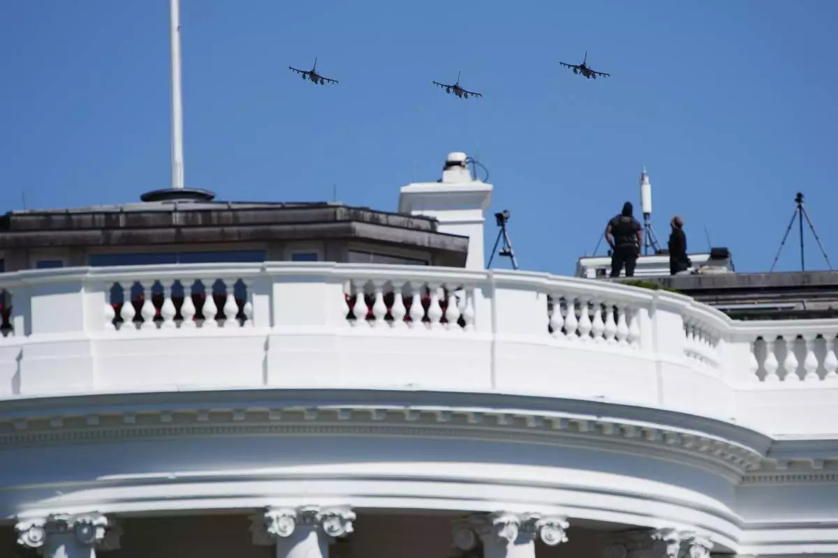 Military aircraft fly over the White House in Washington for the arrival of Polish President Karol Nawrocki, Wednesday, Sept. 3, 2025, in Washington. (AP Photo/Alex Brandon)
