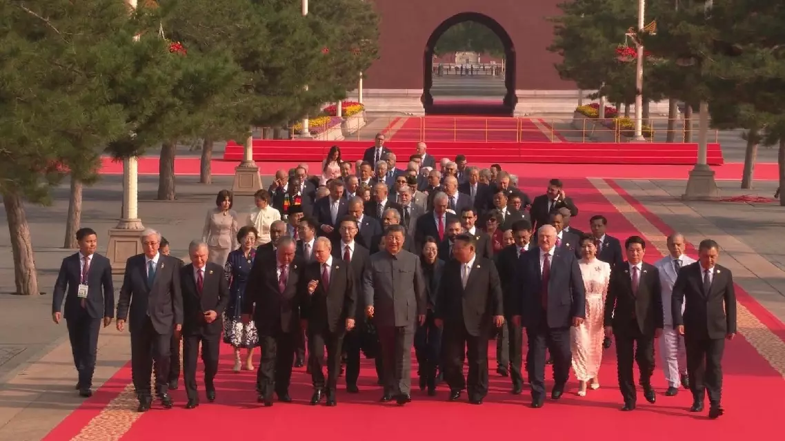 Chinese President Xi Jinping and international guests ascended the Tian'anmen Rostrum in Beijing on Wednesday morning to attend a grand gathering to mark the 80th anniversary of the victory of the Chinese People's War of Resistance Against Japanese Aggression and the World Anti-Fascist War.