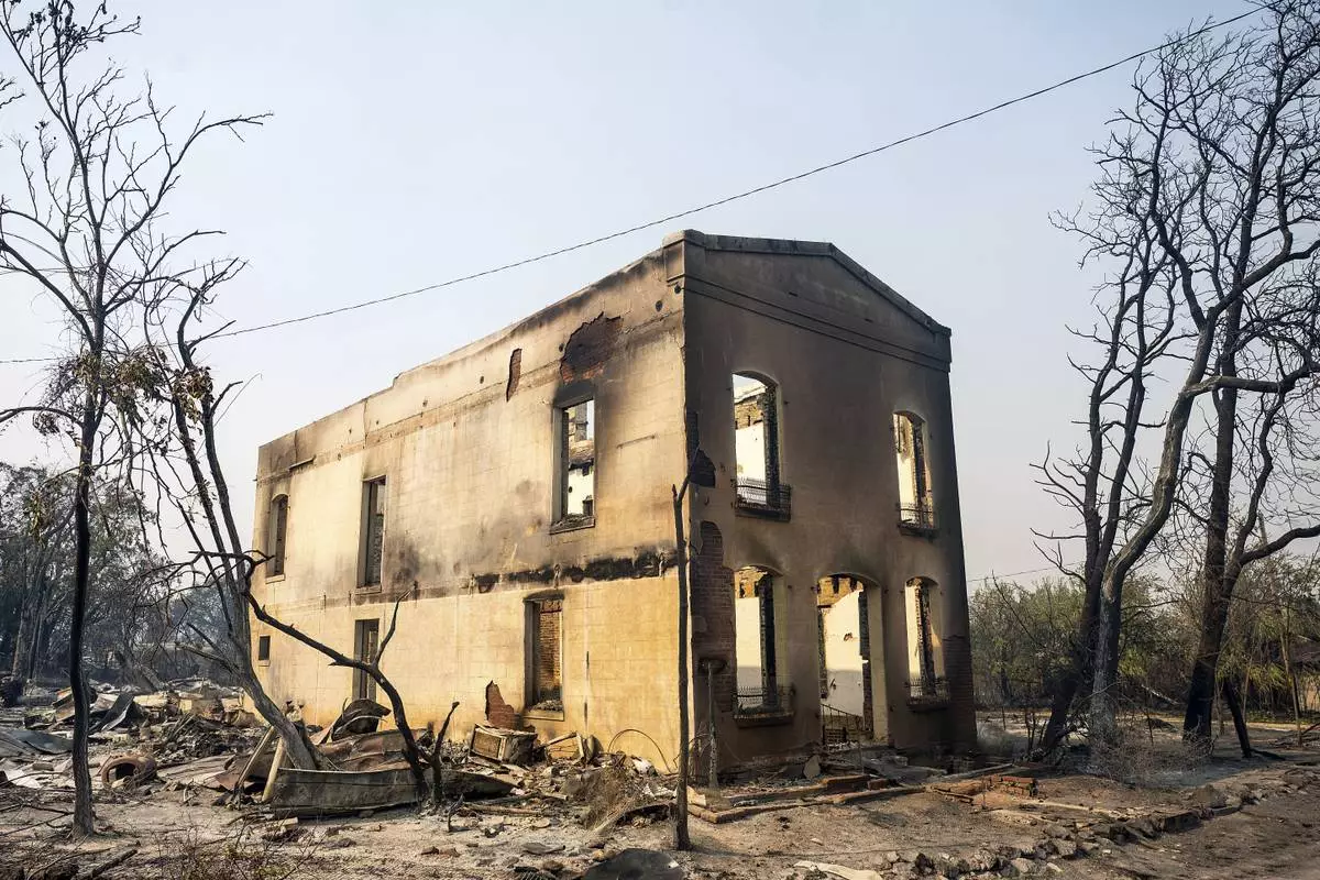 A shuttered Catholic church dating back to 1855 appeared to have survived the flames. The town's general store where tourists could pickup supplies and see historic artifacts also seemed to be intact. But on some lots, all that remained were charred brick walls and scorched trees.