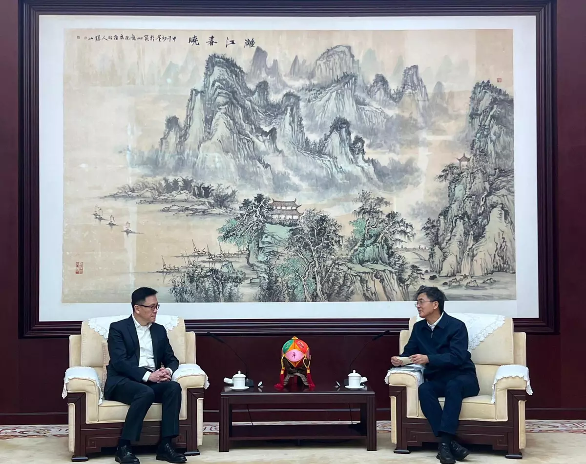 This morning, Professor Sun called on the Secretary of the CPC Guangxi Zhuang Autonomous Region Committee and Director of the Standing Committee of the Guangxi Zhuang Autonomous Regional People's Congress, Mr Chen Gang, and learned that Guangxi is accelerating the high-quality development of artificial intelligence and building an industrial co-operation highland for the AI industry facing the Association of Southeast Asian Nations (ASEAN). They also had exchanges and in-depth discussions on further strengthening the co-operation and synergistic development between Hong Kong and Guangxi in various areas including AI, innovation and technology (I&T) parks, data infrastructure, data governance, and nurturing talent. Member of the Standing Committee of the CPC Guangxi Zhuang Autonomous Region Committee and Vice Chairman of the People's Government of the Autonomous Region Ms Lu Xinning also attended the meeting.