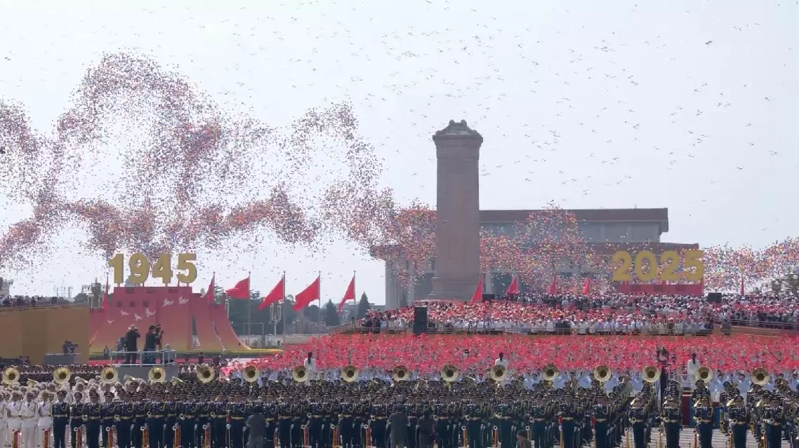 China concluded its V-Day commemorations on Wednesday with the release of 80,000 doves and 80,000 balloons into the sky over the Tian'anmen Square in central Beijing, expressing the Chinese people's commitment to peace and the armed forces' unwavering resolve to defend it.
