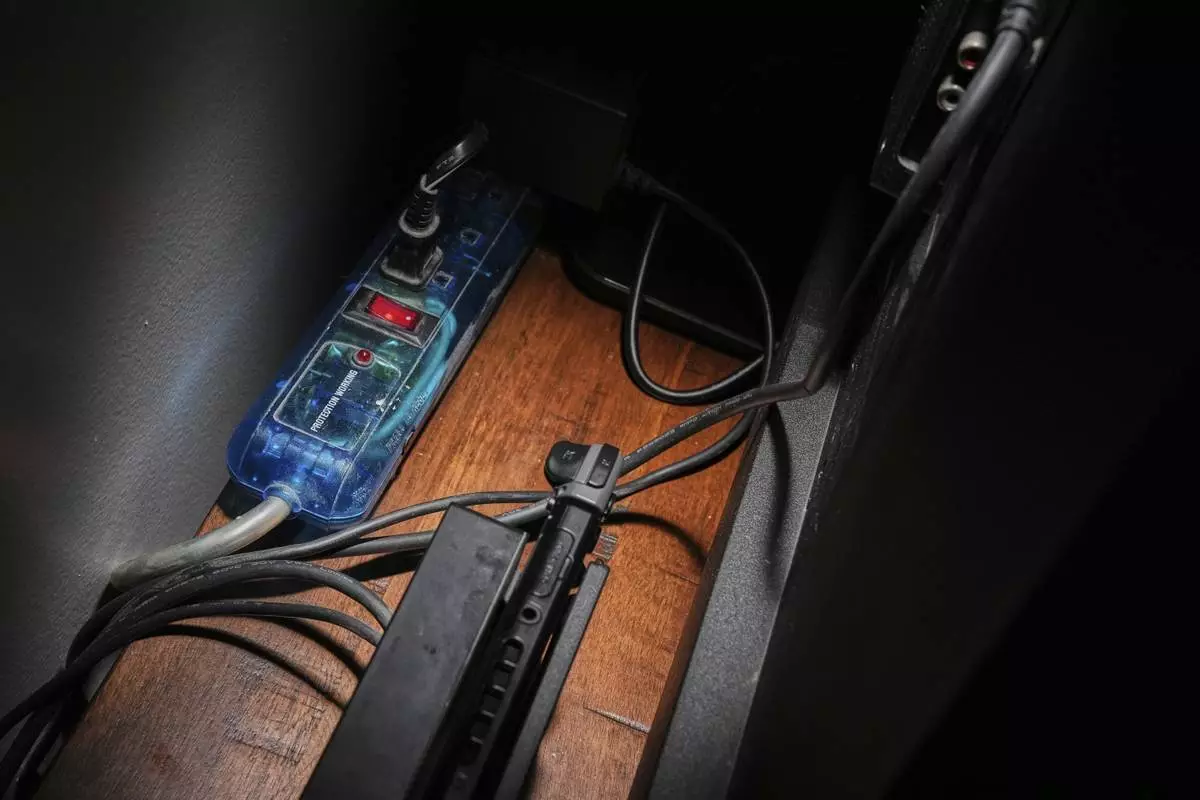Electronics are plugged in at a home Tuesday, Sept. 2, 2025, in Cincinnati. (AP Photo/Joshua A. Bickel)