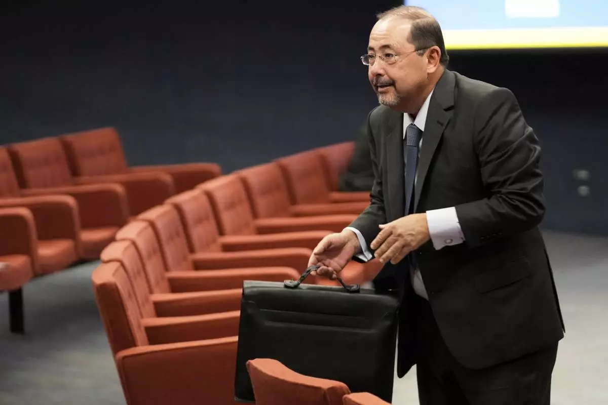 Celso Vilardi, a lawyer for Brazil's former President Jair Bolsonaro, arrives for the verdict and sentencing phase of Bolsonaro's Supreme Court trial for allegedly leading a coup plot to keep him in office after his 2022 election defeat in Brasília, Brazil, Wednesday, Sept. 3, 2025. (AP Photo/Eraldo Peres)