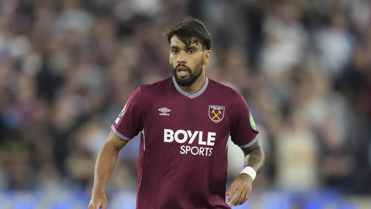 FILE - West Ham's Lucas Paqueta runs into position during the English Premier League soccer match between West Ham United and Chelsea in London, Aug. 22, 2025. (AP Photo/Dave Shopland, file)