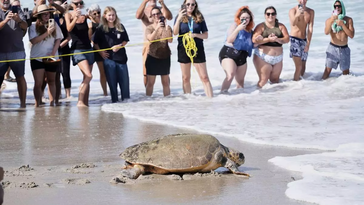 Marine biologists on Florida's Space Coast on Wednesday released June Cleaver back into the ocean before 300 beachgoers following a two-month rehabilitation at the Brevard Zoo’s Sea Turtle Healing Center in Melbourne, Florida.