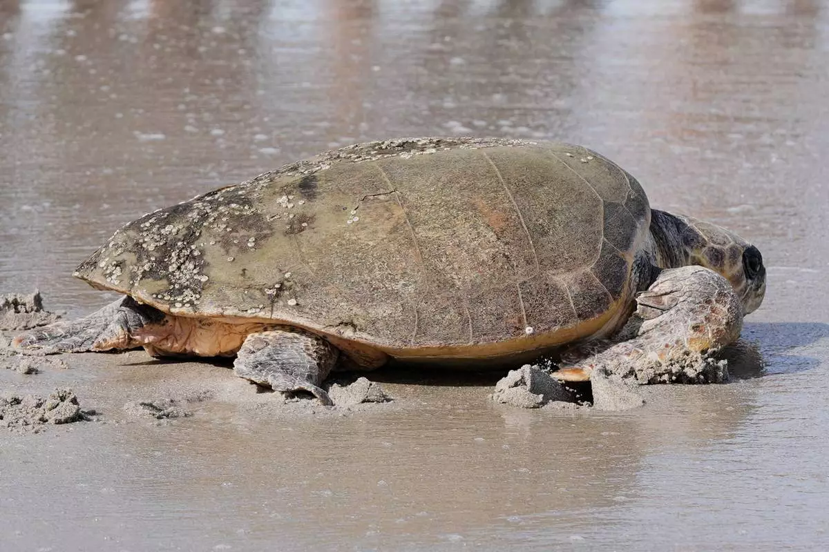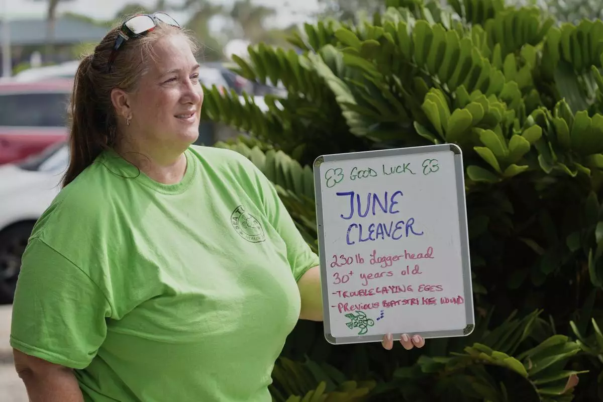MELBOURNE, Fla. (AP) — She may not wear a pearl necklace like her namesake from the TV show, “Leave it Beaver,” but June Cleaver, the 230-pound loggerhead turtle, nevertheless was happy as a clam to be going home.
