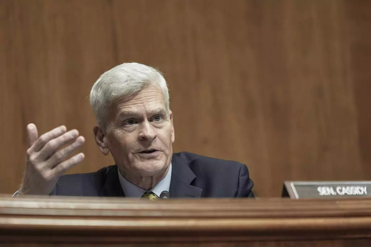 FILE - Sen. Bill Cassidy, R-La., asks a question during a Senate Health, Education, Labor, and Pensions (HELP) Committee hearing, June 18, 2025, on Capitol Hill in Washington. (AP Photo/Mariam Zuhaib, File)