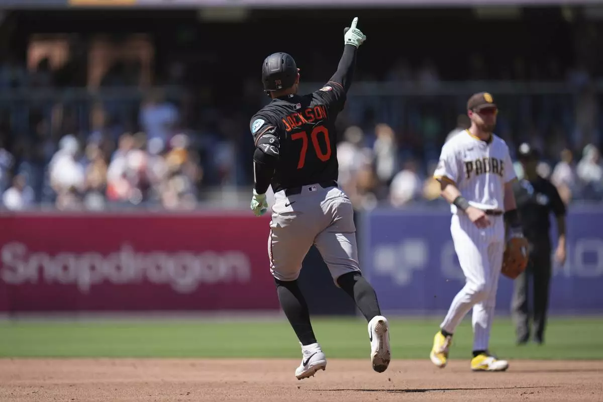 Cowser hit a three-run homer to right-center with one out in the third, his 13th. Mayo homered to center two pitches later, his seventh. Jackson, a San Diego native, homered to left-center on the next pitch, his fifth.