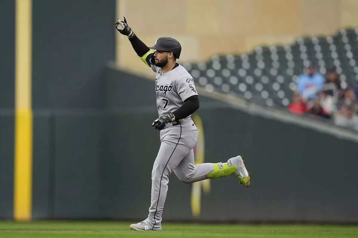 Chicago White Sox's Edgar Quero (7) runs the bases after hitting a solo home run during the second inning of a baseball game against the Minnesota Twins Wednesday, Sept. 3, 2025, in Minneapolis. (AP Photo/Abbie Parr)