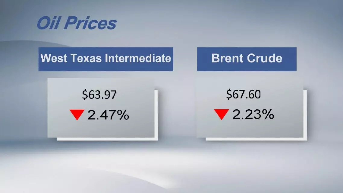 The West Texas Intermediate for October delivery slipped 1.62 U.S. dollars, or 2.47 percent, to settle at 63.97 dollars a barrel on the New York Mercantile Exchange. Brent crude for November delivery dropped 1.54 dollars, or 2.23 percent, to settle at 67.60 dollars a barrel on the London ICE Futures Exchange.