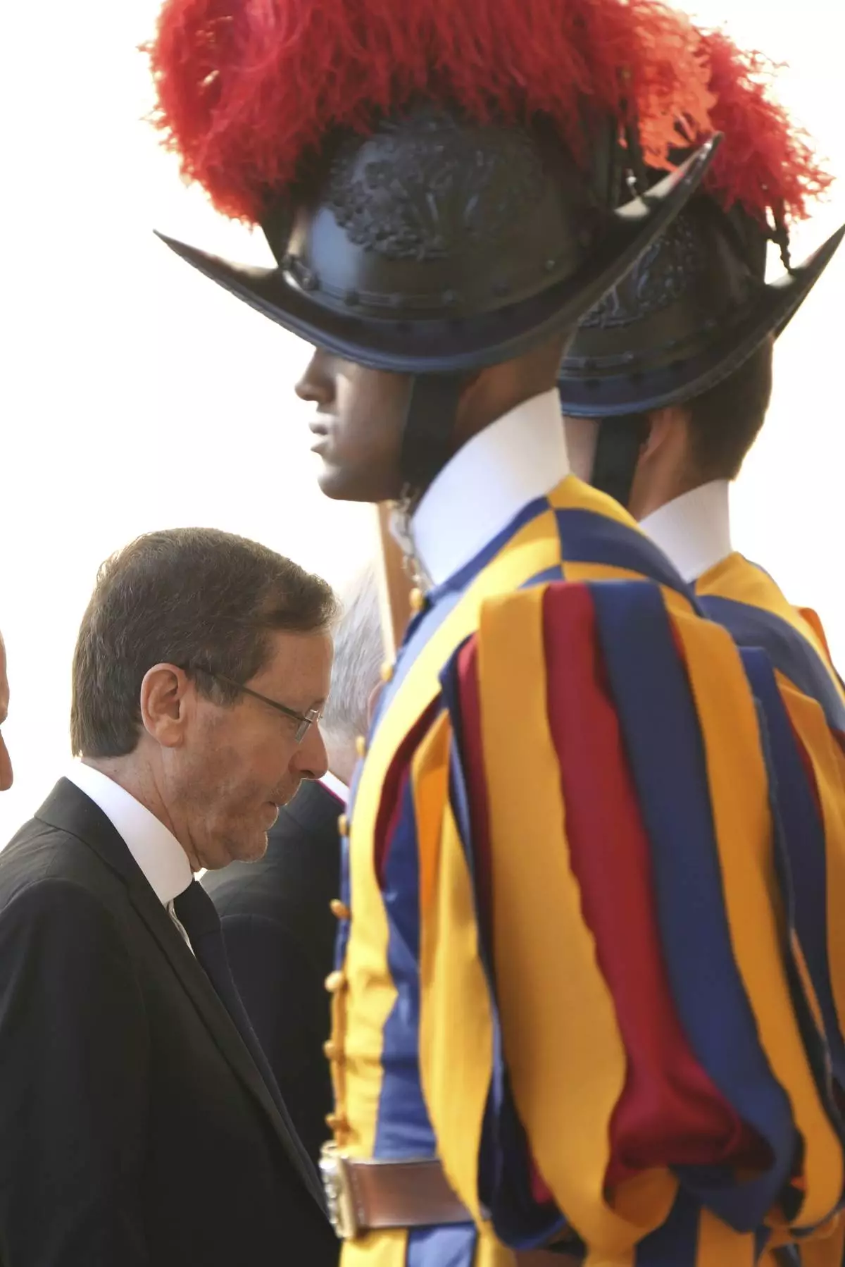 Israel's President Isaac Herzog arrives in the St. Damasus courtyard at The Vatican on his way to a private audience with Pope Leo XIV, Thursday, Sep. 4, 2025. (AP Photo/Domenico Stinellis)