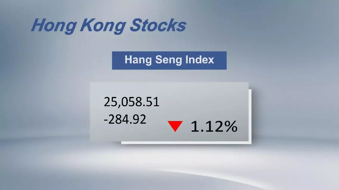 Hong Kong's stock market ended lower Thursday with the benchmark Hang Seng Index down 1.12 percent to close at 25,058.51 points.