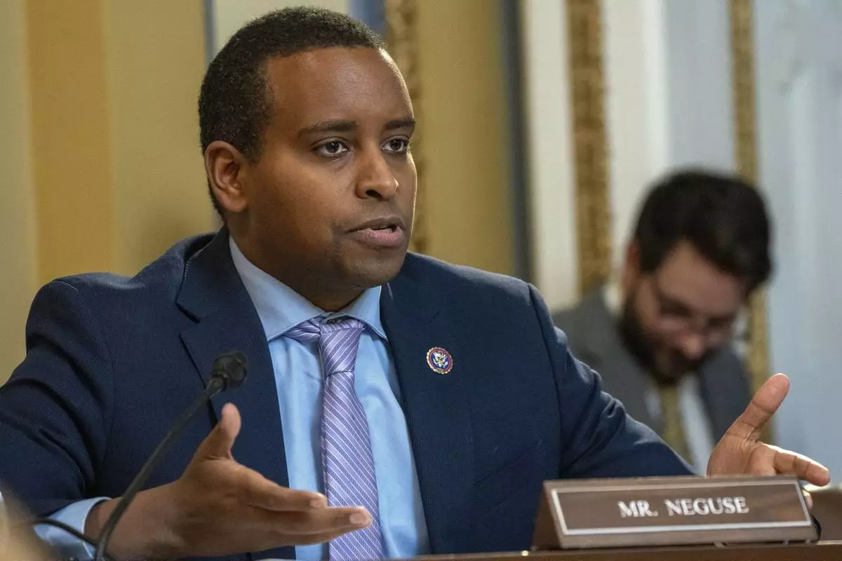 FILE - Rep. Joe Neguse, D-Colo., with the House Rules Committee speaks as the committee meets to discuss pregnancy in college students, after deciding not to consider the resolutions to hold Hunter Biden in contempt of Congress as planned on Tuesday, Jan. 16, 2024, on Capitol Hill in Washington. (AP Photo/Jacquelyn Martin, File)