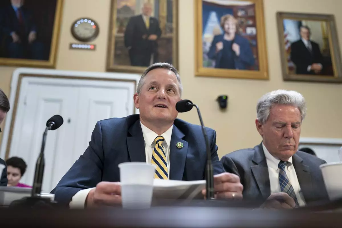FILE - Rep. Bruce Westerman, R-Ark., center, chairman of the House Committee on Natural Resources, joined at right by Rep. Frank Pallone, D-N.J., the House Energy Committee ranking member, delivers remarks as the House Rules Committee prepares the GOP signature energy package, the "Lower Energy Costs Act," for action on the floor, at the Capitol in Washington, Monday, March 27, 2023. (AP Photo/J. Scott Applewhite, File)