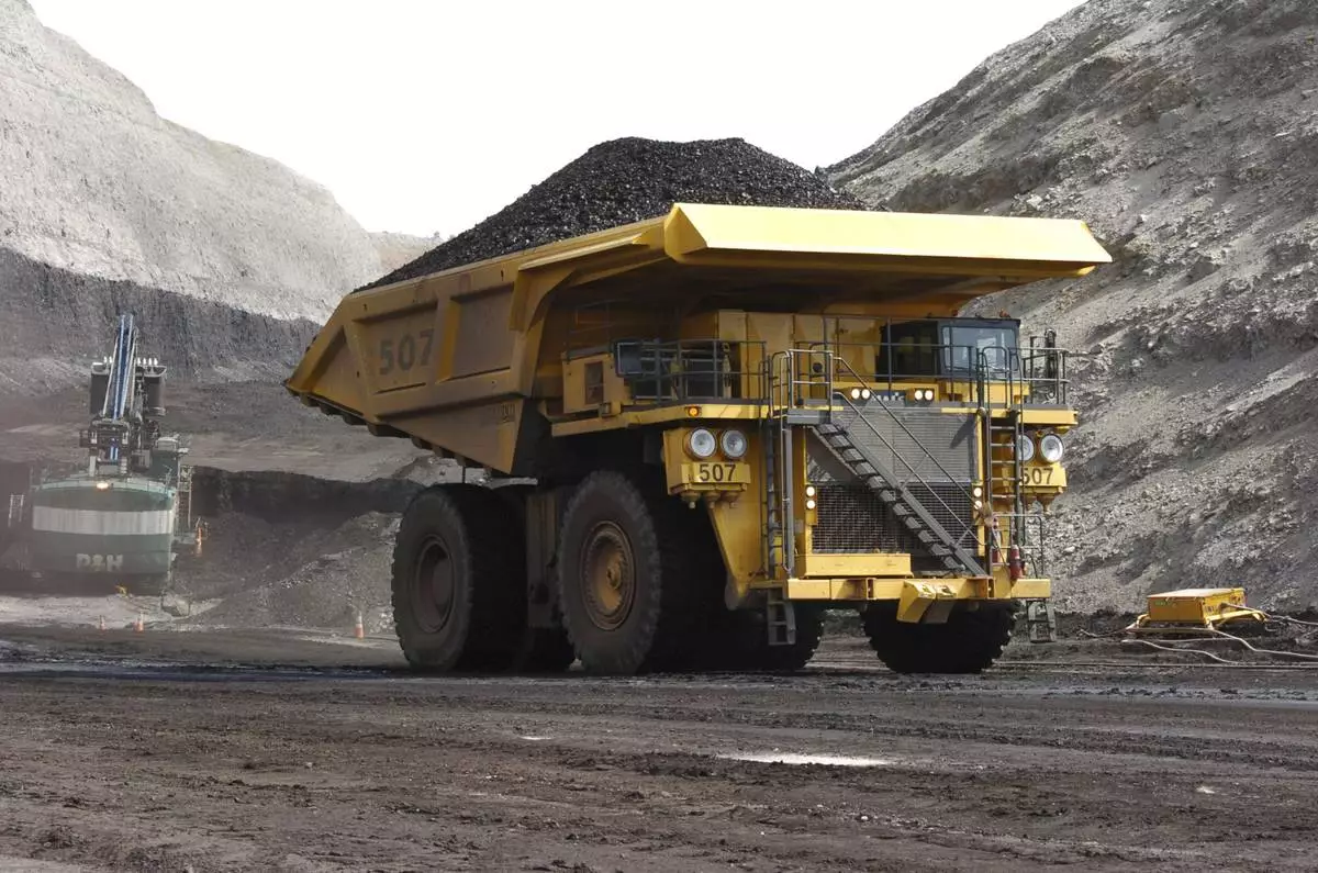 FILE - In this April 4, 2013, file photo, a mining dumper truck hauls coal at Cloud Peak Energy's Spring Creek strip mine near Decker, Mont. AP Photo/Matthew Brown, File)