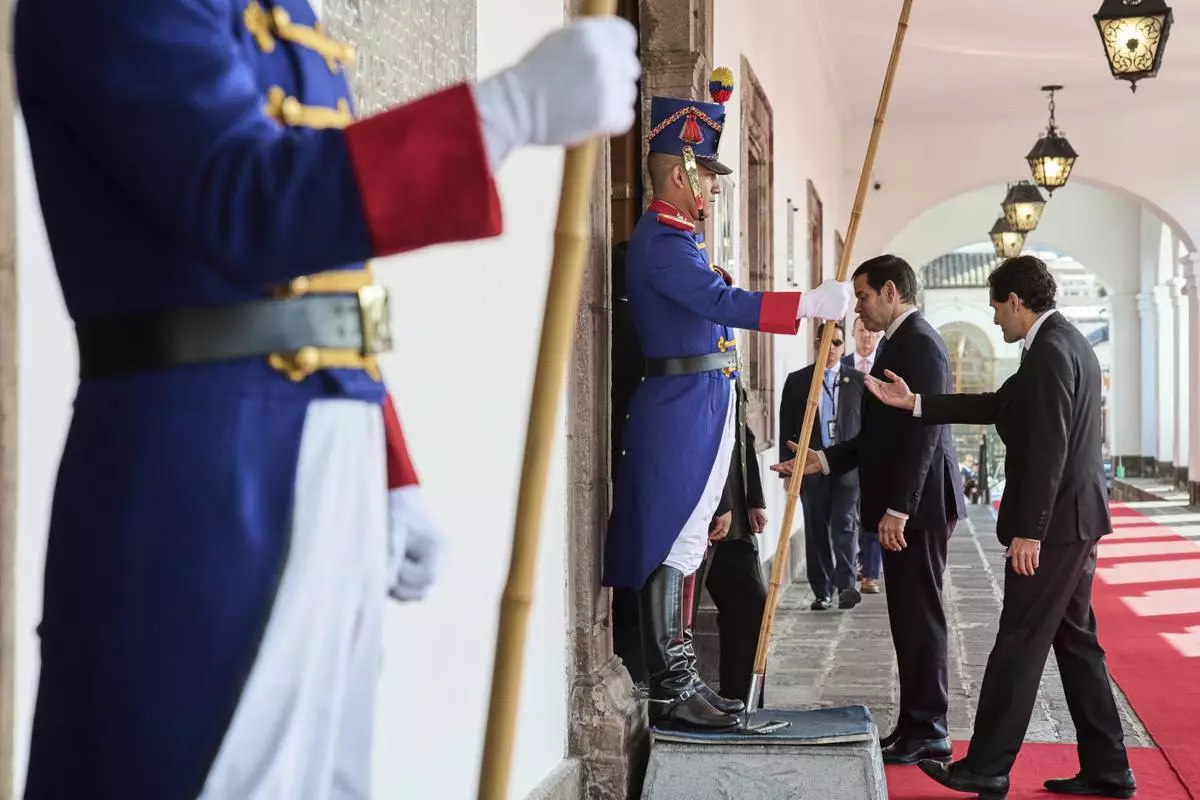 President Daniel Noboa thanked Rubio for the U.S. efforts to “actually eliminate any terrorist threat.” Before their meeting, Rubio said on social media that the U.S. and Ecuador are “aligned as key partners on ending illegal immigration and combatting transnational crime and terrorism."