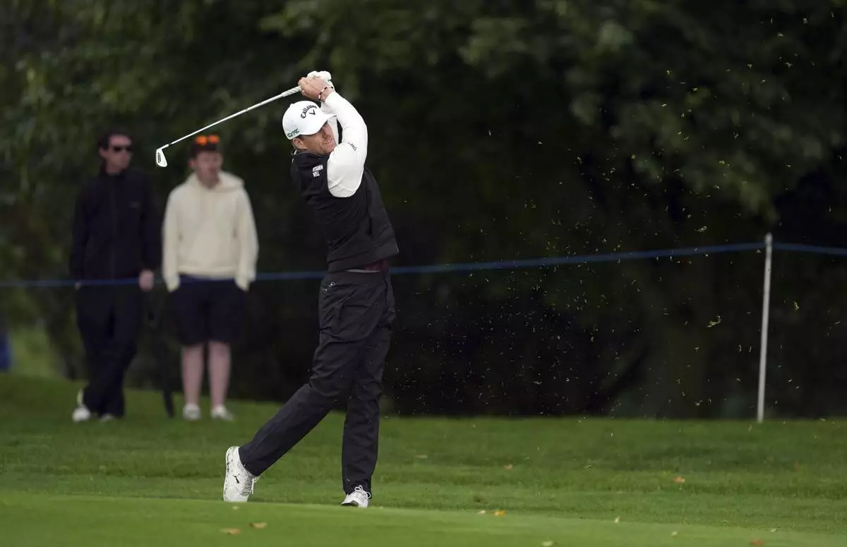 Mikael Lindberg, of Sweden, hits a shot during the Irish Open golf tournament, Thursday, Sept. 4, 2025, at The K Club in Staffan, Ireland. (Brian Lawless/PA via AP)