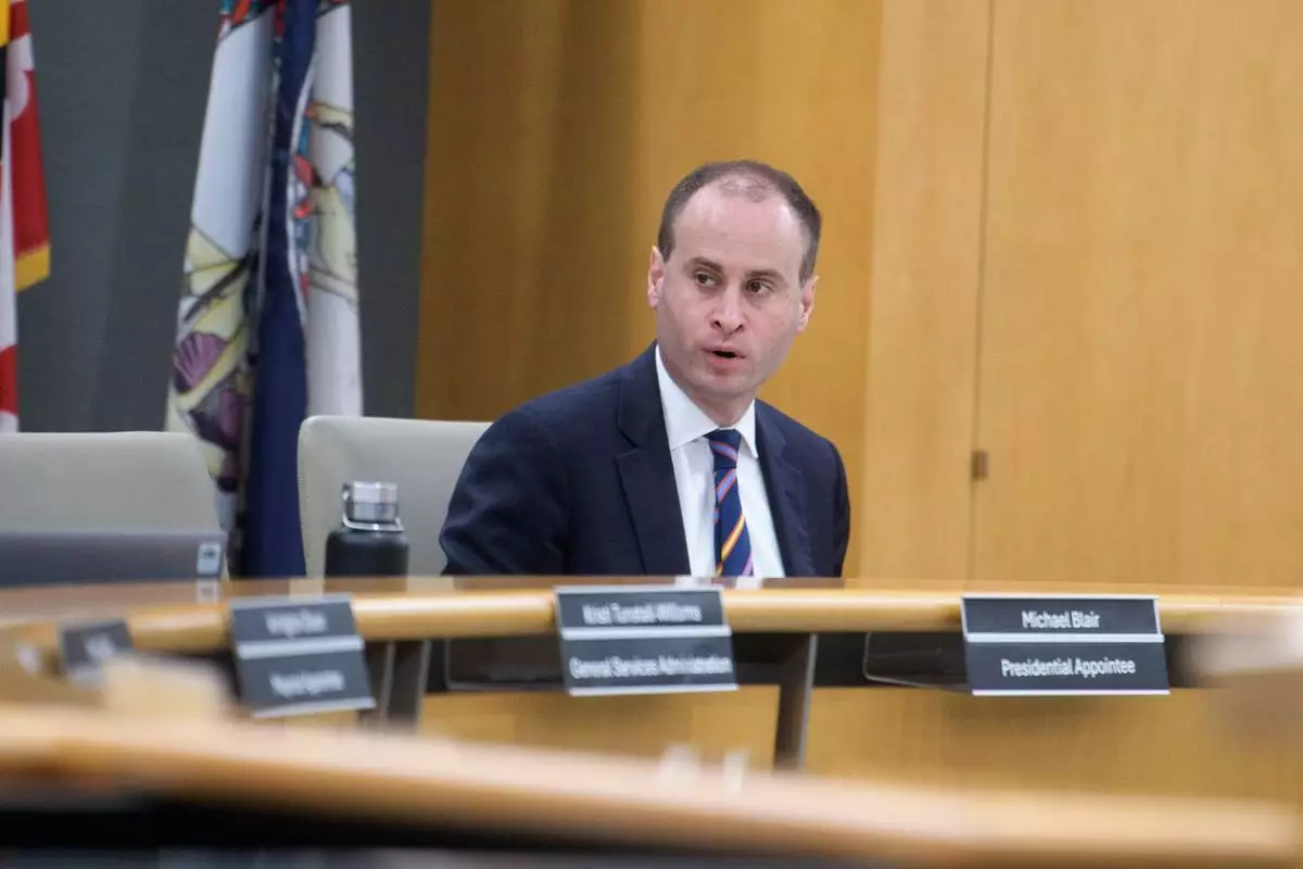 National Capital Planning Commission Chairman Will Scharf presides over a National Capital Planning Commission meeting, Thursday, Sept. 4, 2025, in Washington. (AP Photo/Rod Lamkey, Jr.)