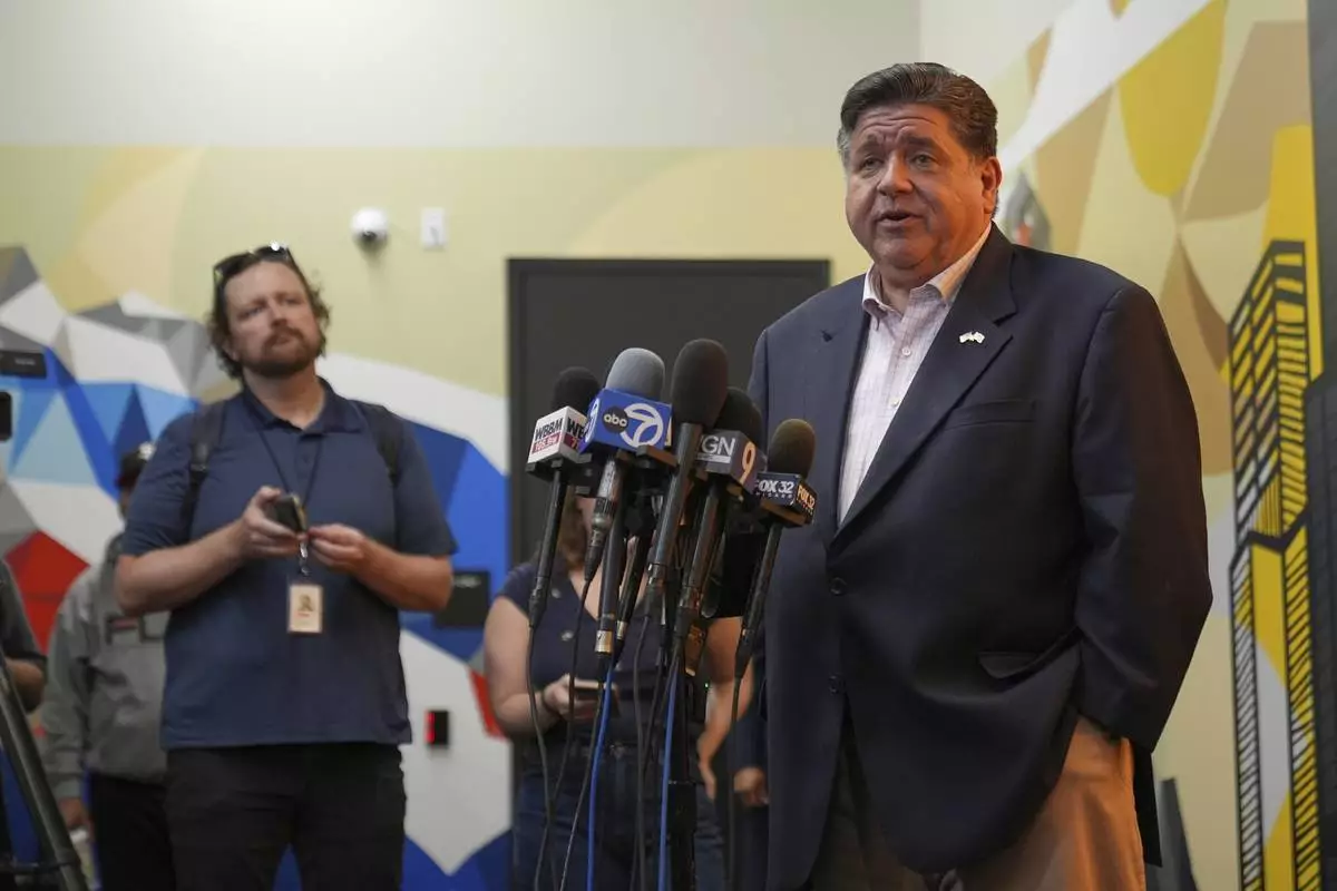 Illinois Gov. JB Pritzker speaks at a news conference after meeting with community violence intervention (CVI) leaders at an emergency response training to prepare for federal deployments in Chicago, Wednesday, Sept. 3, 2025. (AP Photo/Nam Y. Huh)