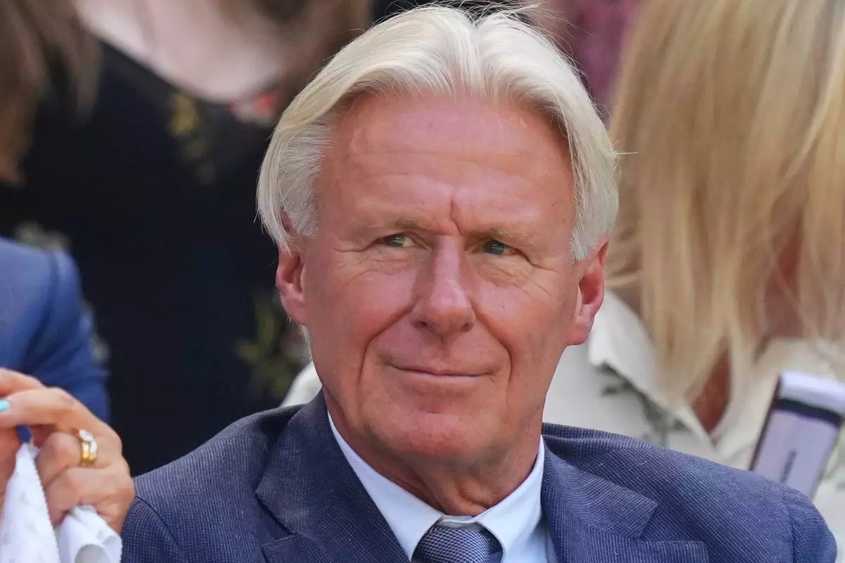 FILE - Tennis legend Bjorn Borg sits in the Royal Box to watch Aryna Sabalenka, of Belarus, and Amanda Anisimova ,of the United States,. to play in a women's singles semifinal match at the Wimbledon Tennis Championships in London, Thursday, July 10, 2025. (AP Photo/Kirsty Wigglesworth, File)