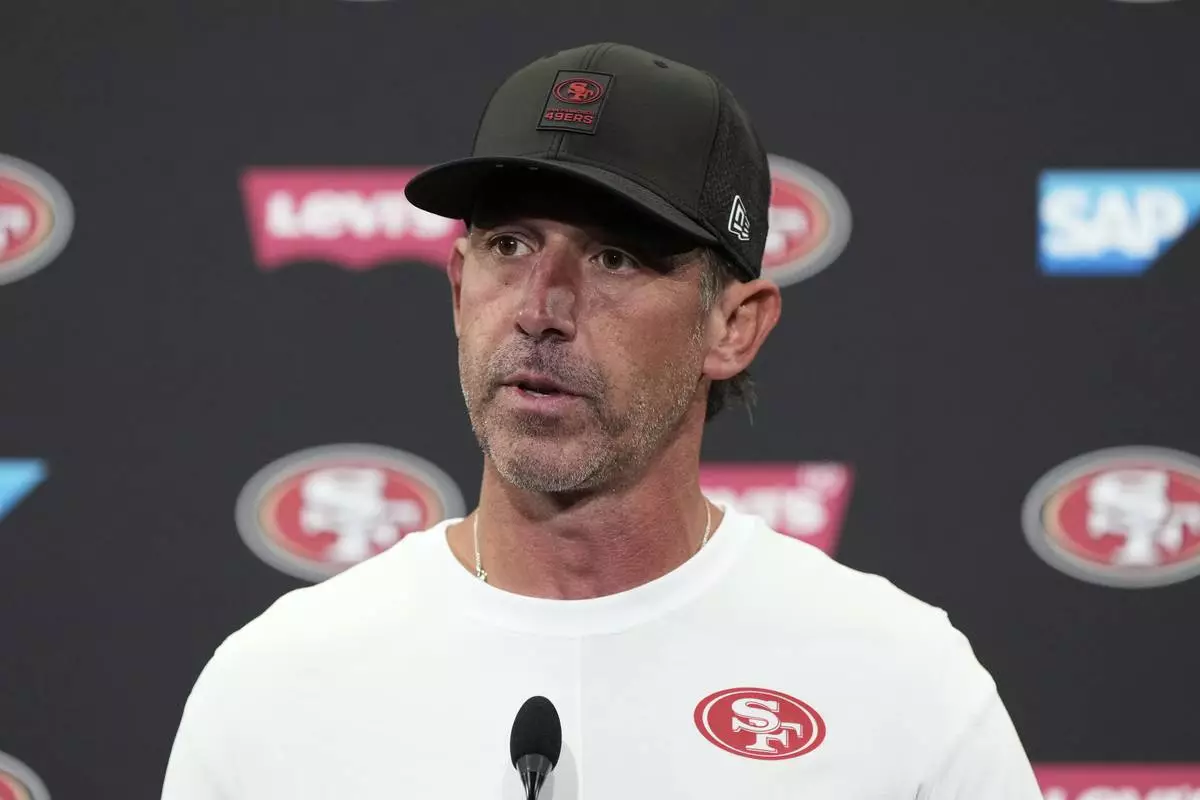 San Francisco 49ers head coach Kyle Shanahan speaks at news conference after an NFL preseason football game against the Los Angeles Chargers in Santa Clara, Calif., Saturday, Aug. 23, 2025. (AP Photo/Godofredo A. Vásquez)