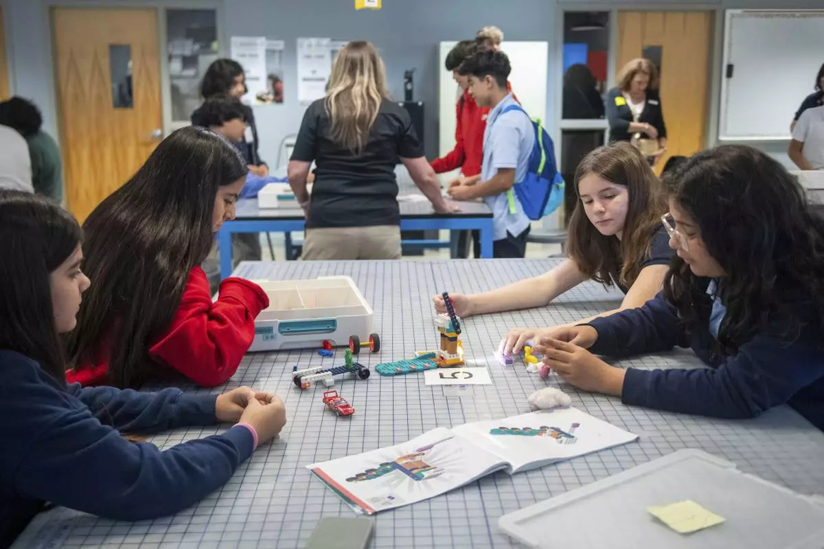 IRVING, Texas (AP) — Crowded around a workshop table, four girls at de Zavala Middle School puzzled over a Lego machine they had built. As they flashed a purple card in front of a light sensor, nothing happened.