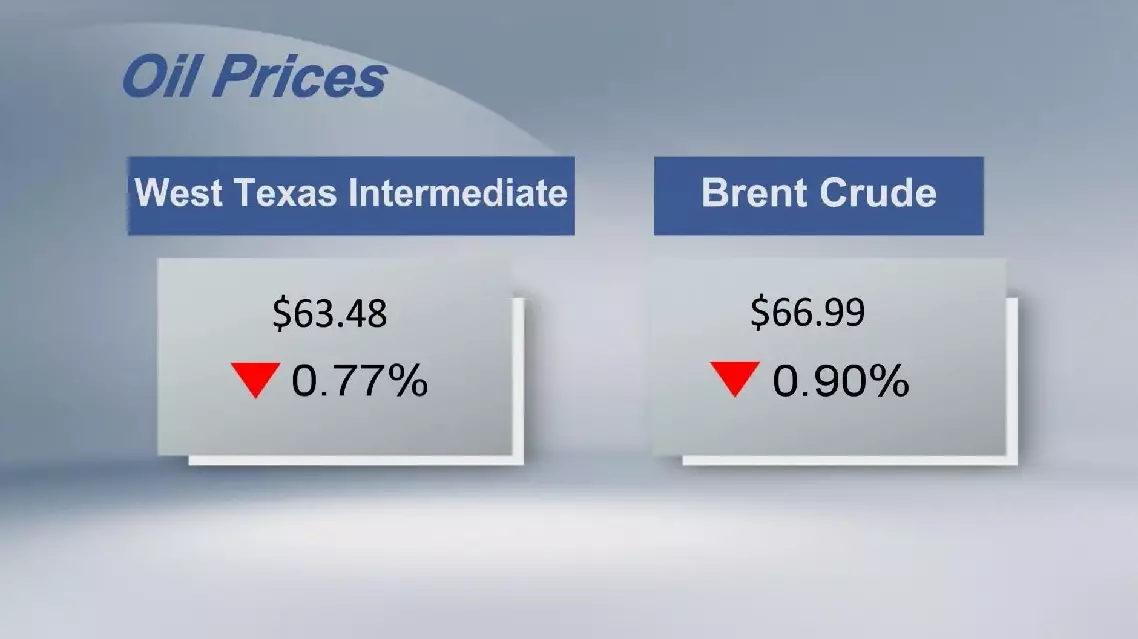 The West Texas Intermediate for October delivery slipped 49 cents, or 0.77 percent, to settle at 63.48 U.S. dollars a barrel on the New York Mercantile Exchange.
