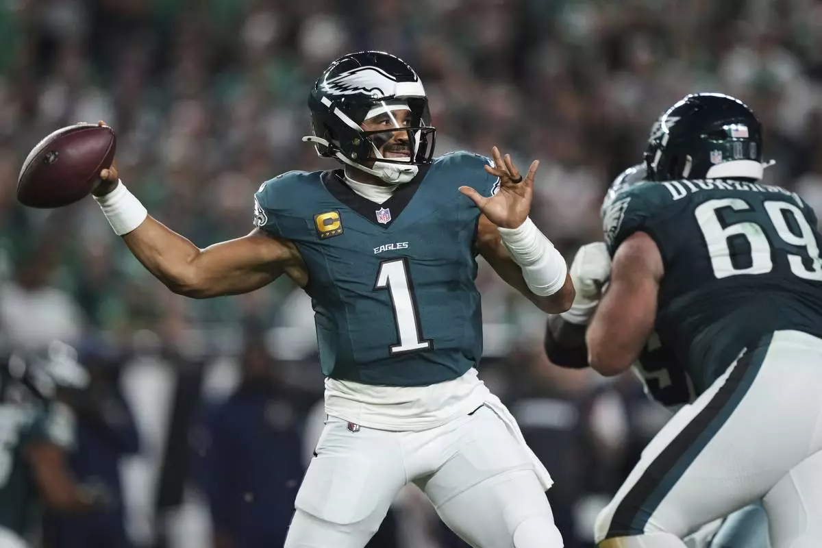 PHILADELPHIA (AP) — Jalen Hurts shrugged on a TD celebration and did his best to be like Mike.