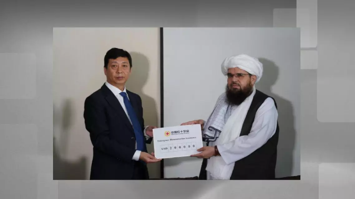 Bao Xuhui, charge d'affaires of the Chinese Embassy in Afghanistan, handed over the cash assistance—provided by the Red Cross Society of China (RCSC)—to Afghan Red Crescent Society (ARCS) President Sheikh Shahabudin Dilawer at a ceremony on Friday.
