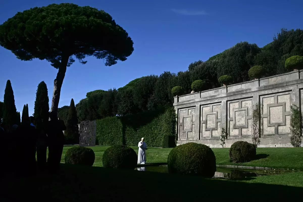 Leo travelled by helicopter to Castel Gandolfo and then zoomed around the estate’s cypress-lined gardens in an electric golf cart to reach the center, which is named for Francis’ landmark 2015 encyclical “Laudato Si,” or Praised Be. The document, which inspired an entire church movement, cast care for the planet as an urgent and existential moral concern that was inherently tied to questions of human dignity and justice, especially for the poor.