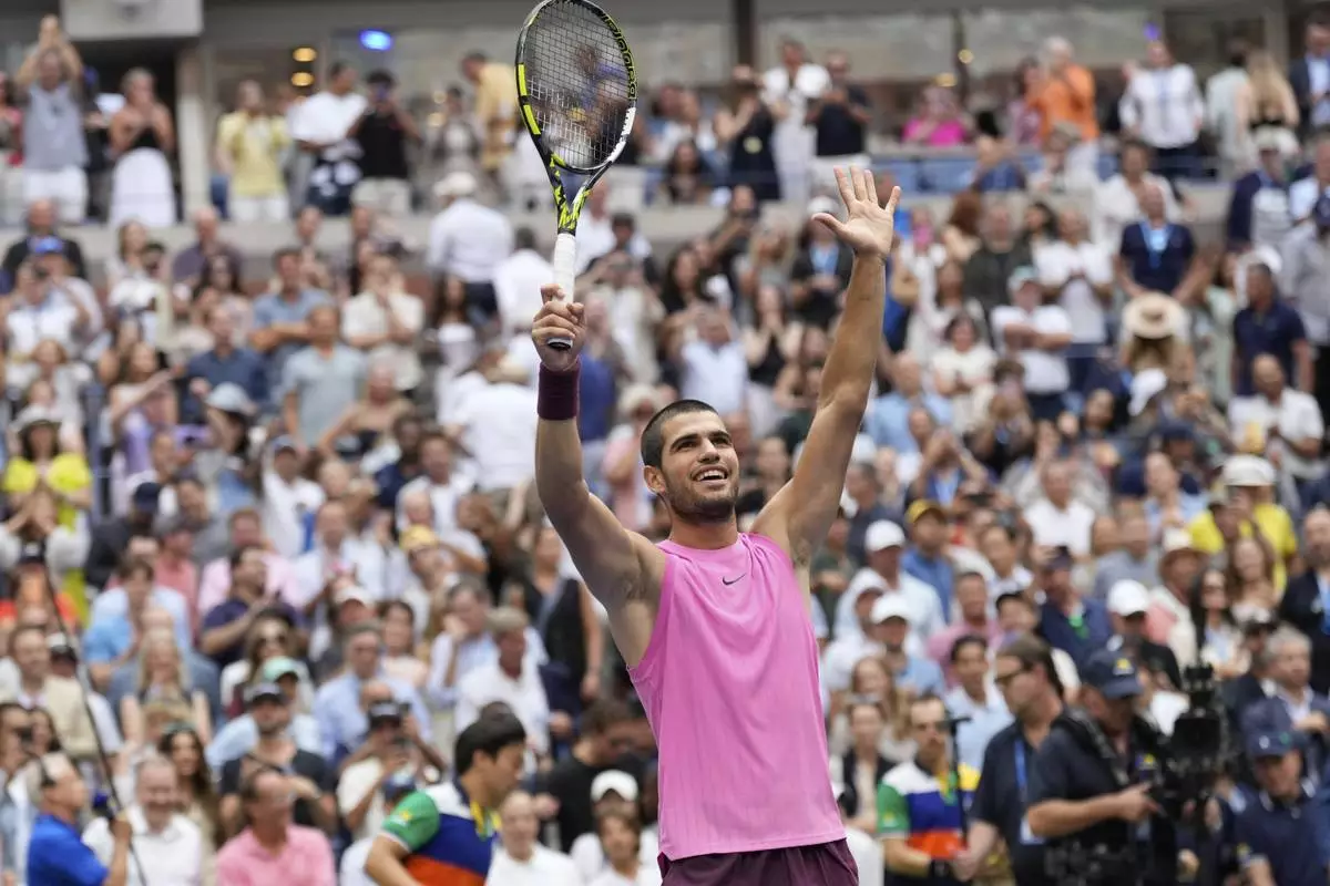 NEW YORK (AP) — Carlos Alcaraz was about to start a series of TV interviews to discuss the way he used his youth, athleticism and creativity to beat the much more accomplished, but also much older, Novak Djokovic 6-4, 7-6 (4), 6-2 in the U.S. Open semifinals Friday.