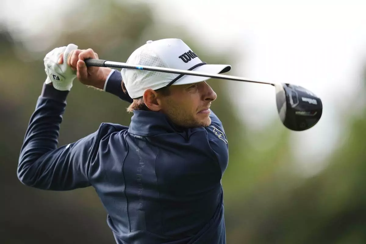 Sweden's Joakim Lagergren hits a tee shot during the second round of the Irish Open golf tournament, Friday, Sept. 5, 2025, at The K Club in Straffan, Ireland. (Brian Lawless/PA via AP)