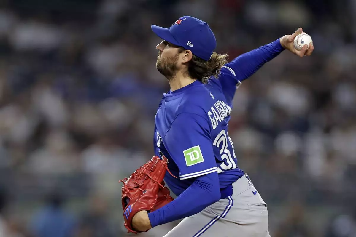 Toronto Blue Jays pitcher Kevin Gausman throws during the first inning of a baseball game against the New York Yankees, Friday, Sept. 5, 2025, in New York. (AP Photo/Adam Hunger)